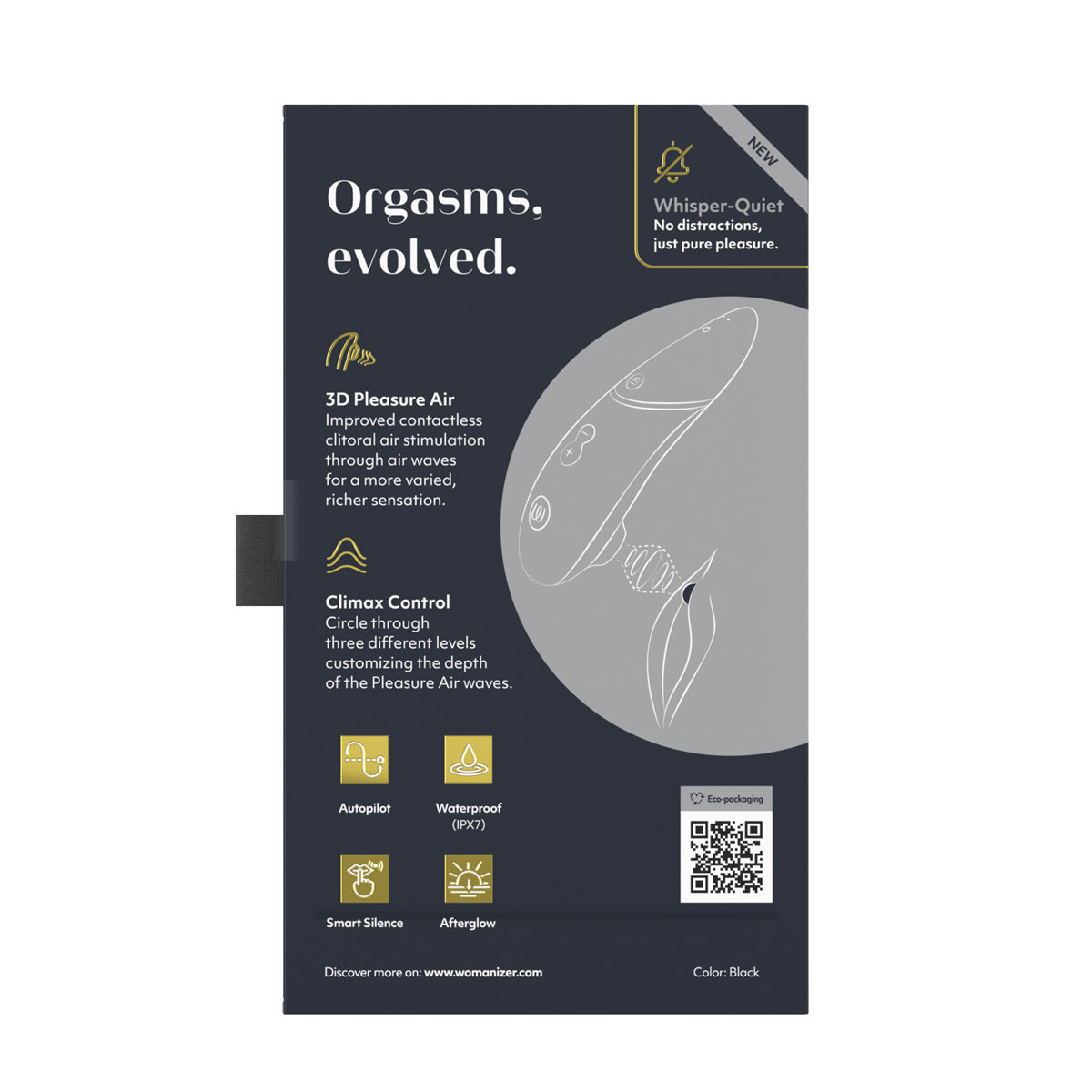 Enter the pleasure dimension with the Womanizer Next and experience the luxurious pleasure of 3D Pleasure Air Technology. The improved contactless clitoral air stimulation uses waves to give you a rich sensation.